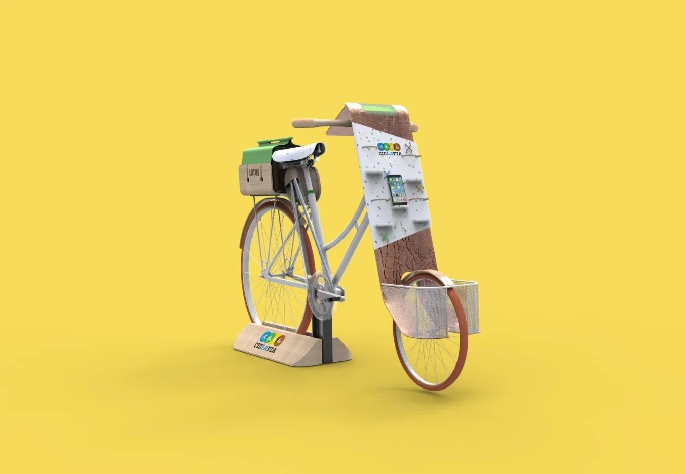 Lotus Elevated’s charging station is currently displayed at the CicLAvia headquarters in LA’s Arts District.